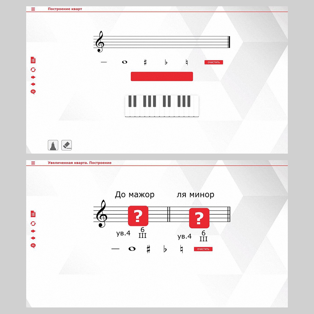Первая — «Учебный курс» — состоит из тем, соответствующих программе, изучаемой в рамках предмета «Сольфеджио» учащимися 4-х классов ДМШ и ДШИ. Темы содержат слайды, в которых имеется наглядно-иллюстративный материал, а также интерактивные задания и тесты для контроля и закрепления изученного материала.