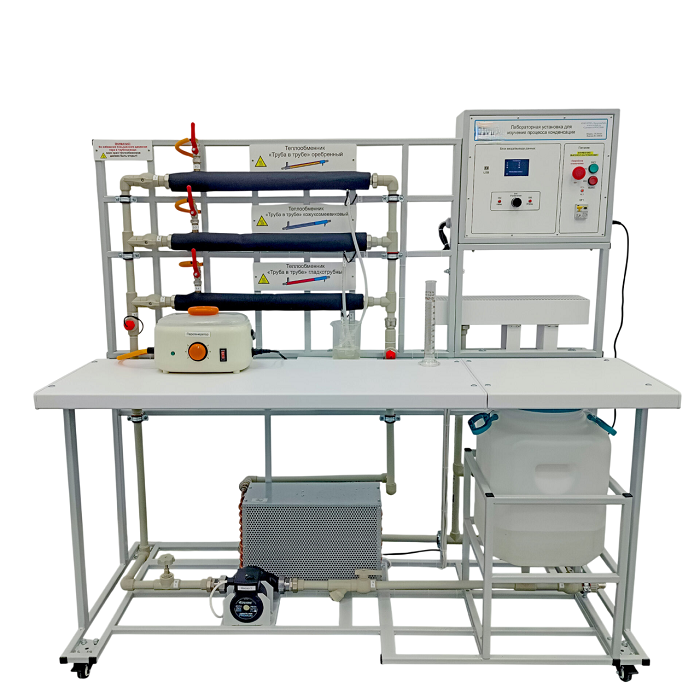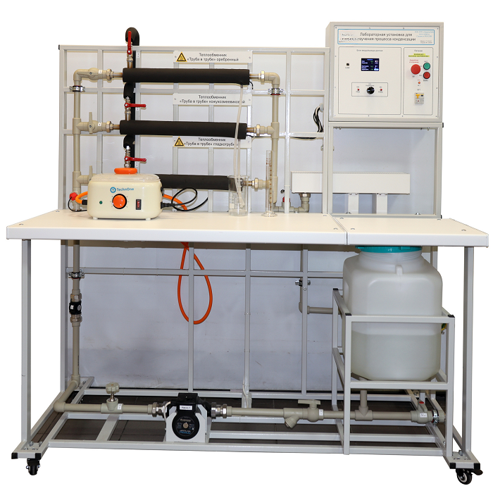Лабораторный установка для изучения процесса конденсации предназначен для проведения лабораторных и практических работ по изучению процесса конденсации на одиночных горизонтальных трубах (гладкой и оребренной).